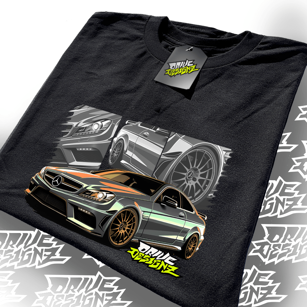 Drive Designz T-Shirt Black White Custom Car JDM EURO ELECTIRCMERCEDES-BENZ C63